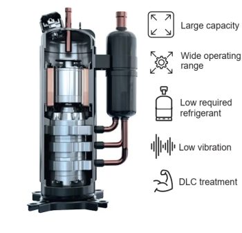 - Vận hành luân phiên (Rotation Drive): Hệ thống tự động thay đổi thứ tự ưu tiên của các máy nén giữa hai dàn nóng nhằm cân bằng thời gian hoạt động, tránh tình trạng một máy hoạt động quá tải trong khi máy khác nghỉ ngơi, từ đó kéo dài tuổi thọ cho toàn bộ linh kiện.